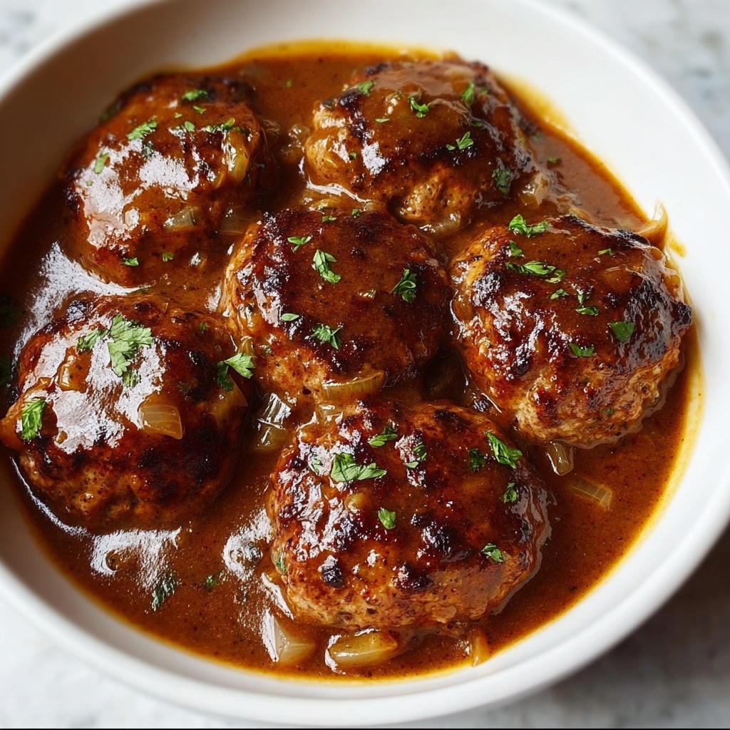 Cover the baking dish with foil and bake for 45 minutes to allow the patties to cook through and for the flavors to meld beautifully. After that, remove the foil and bake an additional 10 to 15 minutes until the gravy is bubbly and thickened slightly. This finish gives you a perfectly set, rich dish that’s ready for the table.