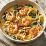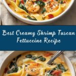 This Best Creamy Shrimp Tuscan Fettuccine recipe features tender shrimp and fresh spinach in a rich, garlicky cream sauce with sun-dried tomatoes and Parmesan. Ready in just 30 minutes, this Italian-inspired pasta dish combines luscious flavors and creamy textures for an elegant yet easy weeknight meal.