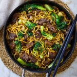 This Black Pepper Beef Noodles recipe features tender, marinated rump steak stir-fried with fresh vegetables and thick Hokkien noodles, all tossed in a fragrant, savory black pepper sauce. Ready in just 35 minutes, it’s a perfect weeknight meal packed with umami-rich flavors and a comforting blend of textures.