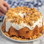 Spread the luscious frosting over the cooled Bundt cake evenly. Finally, sprinkle the reserved crushed Butterfingers on top, adding that extra layer of crunch and a beautiful finishing touch that screams indulgence.