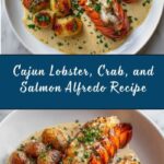 A savory and indulgent Cajun Lobster, Crab, and Salmon Alfredo combining rich seafood flavors with creamy homemade Alfredo sauce, enhanced by a touch of Cajun spice. Perfect for a special dinner that balances delicate seafood with a spicy, creamy twist.
