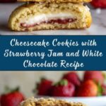 Decadent cheesecake cookies filled with creamy strawberry jam and cream cheese, enhanced with a touch of white chocolate. These delightful cookies feature a soft, buttery dough combined with graham cracker crumbs and are perfect for an elegant dessert or a special treat.