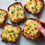 Place the cheese-topped bread halves on your prepared baking sheet, cheese-side up, and bake for 10 to 12 minutes until the cheese is melted, bubbly, and the edges start turning golden. For an extra crispy, slightly browned top, pop the bread under the broiler for 1 to 2 minutes—but keep a close eye to avoid burning.