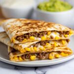 - Assemble Quesadillas: Place one tortilla flat on a cutting board. Sprinkle a layer of shredded cheese over half of the tortilla, add a generous amount of the beef mixture on top of the cheese, then add another layer of cheese over the beef. Fold the tortilla over to create a half-moon shape. Repeat with the remaining tortillas and filling.