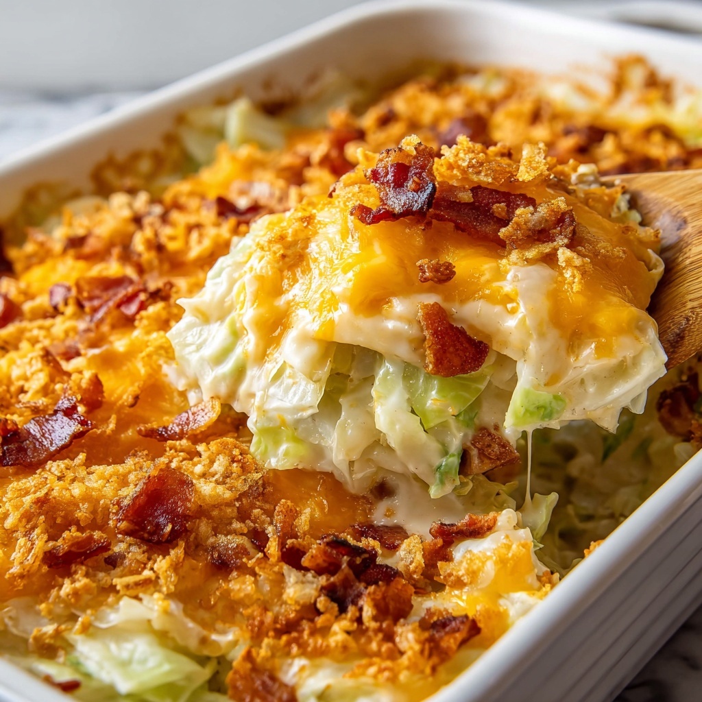 For a dinner party, serve the casserole in individual ramekins topped with extra crispy bacon and a sprinkle of cheese for an elegant touch. You can also layer the casserole in a clear baking dish to show off its colorful layers of cabbage and bacon for a visually appealing centerpiece.