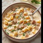 A rich and comforting Creamy Parmesan Italian Sausage Ditalini Soup featuring savory Italian sausage, tender ditalini pasta, and a blend of aromatic herbs in a creamy Parmesan-infused broth. Perfect for a hearty meal in just 30 minutes.