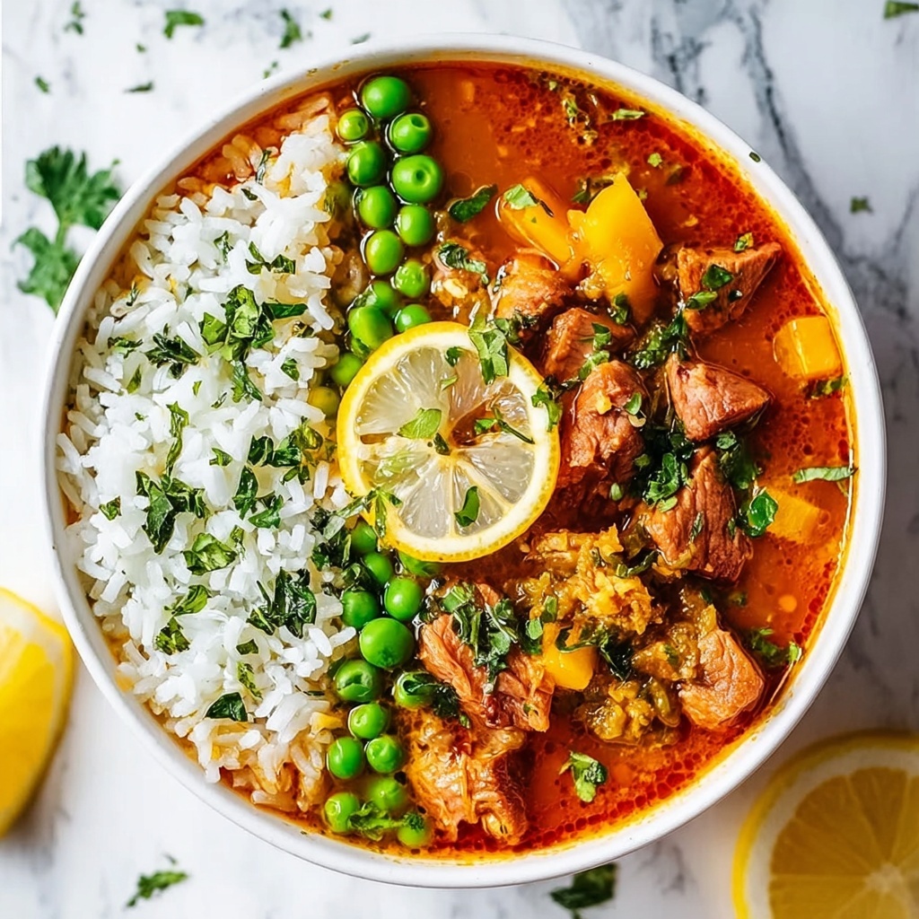 Delicious Bazella is a comforting dish featuring tender ribeye steak cubes simmered with vibrant tomato sauce, sweet peas, and carrots. This cozy one-pan meal offers a harmonious blend of spices and fresh ingredients, perfect for a hearty family dinner in just 40 minutes.