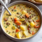 This Easy Slow Cooker Cheeseburger Soup is a hearty and comforting dish perfect for busy days. Ground beef, tender potatoes, and fresh vegetables simmer slowly in beef broth, then blended with creamy cheddar cheese for a deliciously rich and satisfying soup.
