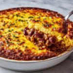 This Easy Weeknight Chili Tater Tot Casserole is a comforting and hearty dish perfect for busy evenings. Ground beef is simmered with chili beans, tomatoes, and spices, then layered with cheese and crispy tater tots. Baked until golden and bubbly, it’s an ideal family-friendly meal that combines classic chili flavors with a fun, crispy topping.