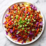Sprinkle sliced green onions and sesame seeds over the top for a lovely finishing touch. These fresh garnishes enhance both flavor and presentation, completing your colorful, tasty Egg Roll in a Bowl Recipe. Serve it right from the pan while it’s warm and inviting.