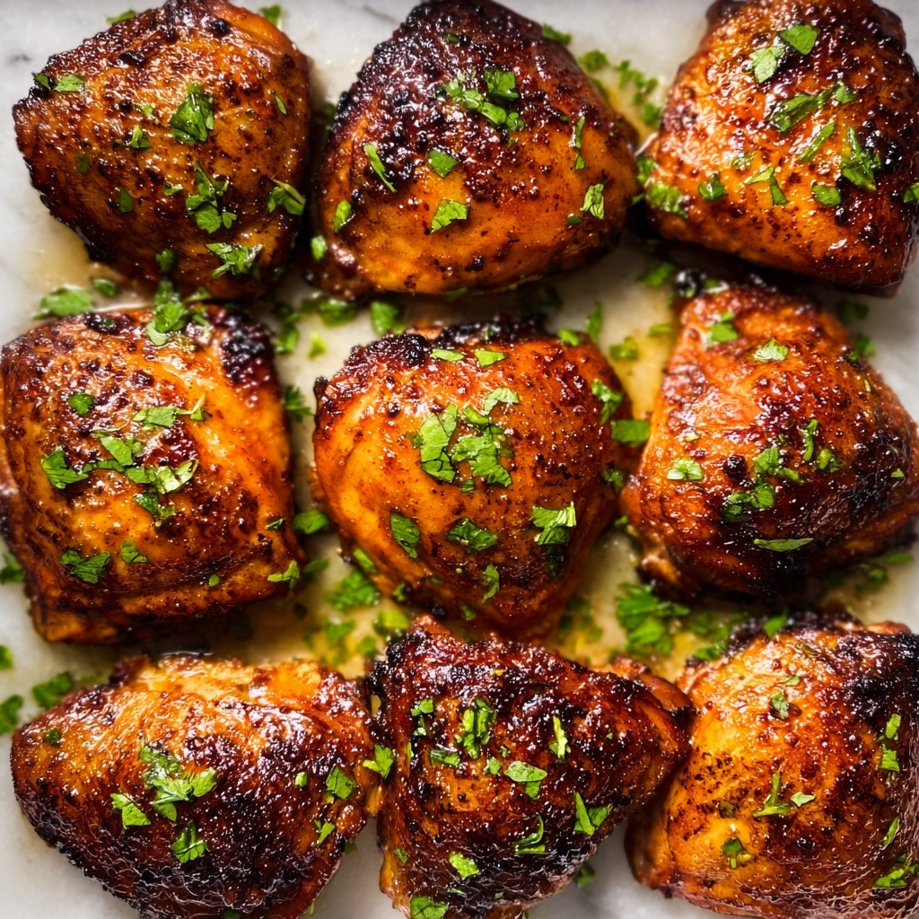 Once your chicken is baked to golden, juicy perfection, scoop some of the flavorful sauce from the baking dish and spoon it generously over each piece. If you want to add a fresh, herbal note and a splash of color, sprinkle chopped parsley on top. This final touch adds brightness that balances the sweet and savory sensations in every bite.