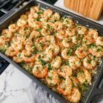 Once out of the oven, sprinkle fresh parsley over the shrimp to add a pop of color and freshness. Serve immediately with lemon wedges for squeezing, which brighten the dish with their zesty tanginess.
