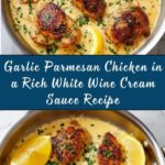 Garlic Parmesan Chicken in a Rich White Wine Cream Sauce Recipe