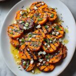 These sweet potato rounds pair wonderfully with crisp green salads or grilled proteins such as chicken or fish, making them a versatile side dish. They also complement Mediterranean-inspired meals, enhancing the herbaceous and tangy flavors on the table.