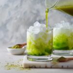 Fill two glasses generously with ice cubes — the more, the merrier to keep things chill and refreshing. Pour your chilled matcha mixture over the ice, then add milk of your choice. Give it a good stir to mingle all the flavors and create that creamy, luscious finish we’re all after in an Iced Matcha Latte Recipe.
