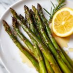 - Finish and serve: Carefully remove the skillet from the oven. Transfer the roasted asparagus to a serving dish and squeeze half a lemon over the top for a refreshing burst of citrus that brightens the dish.