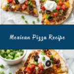 Once baked, remove the pizzas carefully from the oven. Now’s the time to brighten it all up by garnishing with diced tomatoes, sliced black olives, and chopped green bell peppers, adding fresh color and crunch. For an extra touch of creaminess and tang, serve with a dollop of sour cream on top. These final touches make your Mexican Pizza Recipe both visually appealing and wonderfully fresh.