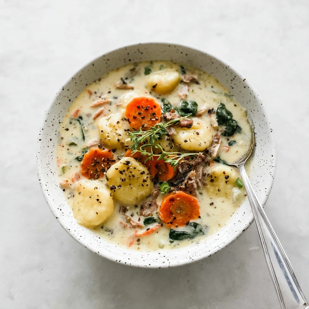 This Olive Garden Chicken Gnocchi Soup is a creamy, comforting dish that blends tender chicken, fluffy potato gnocchi, fresh spinach, and aromatic vegetables in a savory broth. Ready in just 30 minutes, it’s perfect for a cozy weeknight meal full of flavor and warmth.
