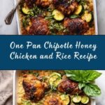 Once the chicken and rice come out of the oven, spoon half of that luscious honey-chipotle sauce over the chicken while it is hot. Then, serve by plating generous portions of the rice, zucchini, and chicken together, topped with fresh basil or additional honey sauce if you like. This last touch adds brightness and balances the smoky heat beautifully.