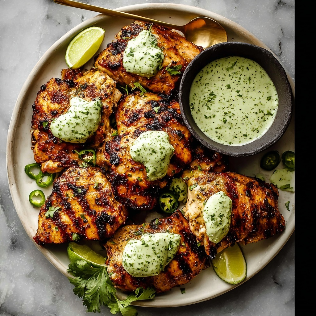 This authentic Peruvian Chicken recipe features juicy marinated chicken thighs grilled to perfection or baked in the oven, paired with a vibrant and creamy cilantro jalapeño green sauce. The bold combination of garlic, cumin, paprika, lime juice, and fresh herbs creates a flavorful and zesty dish perfect for a family meal or special occasion.