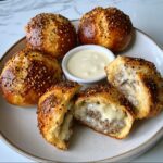 Want to impress guests? Serve the Philly Cheesesteak Stuffed Biscuits Recipe as sliders alongside mini pickle spears or stack them on a pretty platter garnished with fresh herbs. You can also cut them in halves to reveal the cheesy, meaty filling inside—it’s a guaranteed crowd-pleaser that invites everyone to dig in.