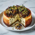 A savory Mediterranean-inspired Pistachio and Mushroom Cheesecake featuring a tangy feta and Parmesan crust. This unique appetizer combines sautéed mushrooms and pistachios with creamy cheesecake filling, perfect for brunch or as a sophisticated starter.