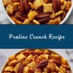 Praline Crunch is a sweet, crunchy cereal treat combining Crispix cereal with pecan halves coated in a rich, buttery praline glaze. Baked to perfection and cooled for a delightful snack or dessert that’s perfect for sharing.