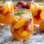 - Serve and garnish: Serve the sangria over ice cubes in glasses. Garnish each glass with additional fresh mint leaves or extra slices of peach, orange, or lime to enhance presentation and aroma.
