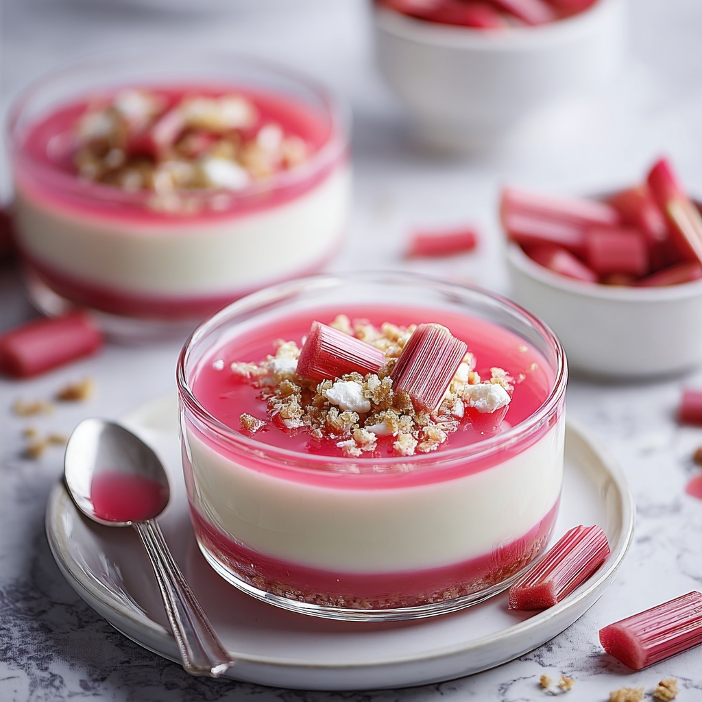 Try serving your panna cotta in elegant stemmed glasses for a sophisticated look or mini mason jars for a rustic charm. Layering the rhubarb compote at the bottom before pouring in the cream mixture creates a stunning effect when flipped upside down. For events, individual panna cottas can be topped with edible flowers for a charming, Instagram-worthy touch.
