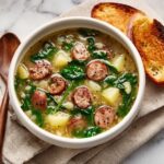 Pair your bowl of sausage soup with crusty bread or warm garlic bread for dipping, which perfectly soaks up every last bit of the luscious broth. A crisp green salad on the side can add some lightness and balance to this hearty meal.