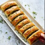 Garnish your strudel with fresh herbs such as chopped parsley or dill to brighten the dish and add a fresh contrast to the warm, earthy interior. A light drizzle of tangy yogurt or a dollop of sour cream on the side can also enhance the creamy feta notes while adding a cooling element.