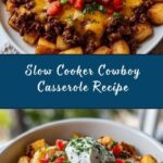 A hearty and comforting Slow Cooker Cowboy Casserole featuring ground beef, potatoes, beans, corn, and cheese, slowly cooked to perfection for a satisfying meal that’s easy to prepare and perfect for busy days.