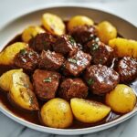 For a family-style meal, serve the Slow Cooker Garlic Butter Beef Bites & Potatoes Recipe straight from the slow cooker, garnished with parsley. If you want to fancy it up, plate individual servings with a drizzle of olive oil and a sprinkle of chili flakes for a touch of heat. You could also toss the beef and potatoes over creamy polenta or buttered noodles for a comforting twist.