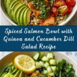 A flavorful and healthy Spiced Salmon Bowl featuring perfectly seasoned salmon fillets served over fluffy quinoa with a refreshing cucumber dill salad. This Mediterranean-inspired dish is easy to prepare on the stovetop and makes a great meal prep option or a nutritious main course.
