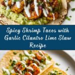These Spicy Shrimp Tacos with Garlic Cilantro Lime Slaw combine tender, flavorful shrimp with a creamy, zesty slaw, creating a perfectly balanced and vibrant meal. Ready in just 30 minutes, this recipe features a homemade spicy sauce, sautéed shrimp coated with a smoky spice blend, and fresh toppings like avocado and Cotija cheese, all wrapped in warm tortillas.