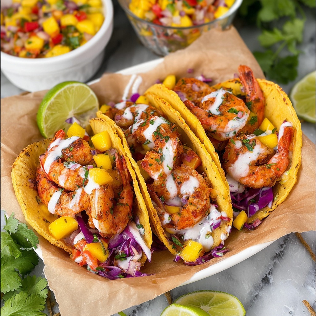 These Spicy Shrimp Tacos with Mango Salsa bring together perfectly seasoned, sautéed shrimp and a fresh, tangy mango salsa, all wrapped in warm tortillas. Topped with crisp cabbage and a creamy lime sauce, this vibrant Mexican-inspired dish is quick to prepare and bursting with flavor, making it an ideal meal for any occasion.