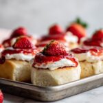 Fresh strawberries are the obvious garnish, giving that vibrant, juicy finish. You can also add a sprinkle of powdered sugar or a few mint leaves for a fresh contrast that makes these rolls look as good as they taste.