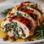 For a dinner party, slice your stuffed chicken breasts into medallions and arrange them elegantly on a platter. Drizzle with a garlic butter sauce or a light tomato coulis for extra flair. Alternatively, serve each breast whole alongside stacked veggies to create a restaurant-worthy presentation that’s sure to impress.