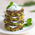 Sprinkle fresh dill or finely chopped mint on top of your fritters for an added burst of herbaceous aroma and a pop of green color. You can also add a lemon wedge on the side for that extra zing if you love citrusy brightness.