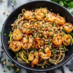 Because zucchini noodles release water when thawed, freezing this dish isn’t ideal if you want to keep the zoodles firm. However, if you must freeze, separate the shrimp and sauce mixture from the zoodles beforehand and thaw slowly, reheating the components separately for better results.