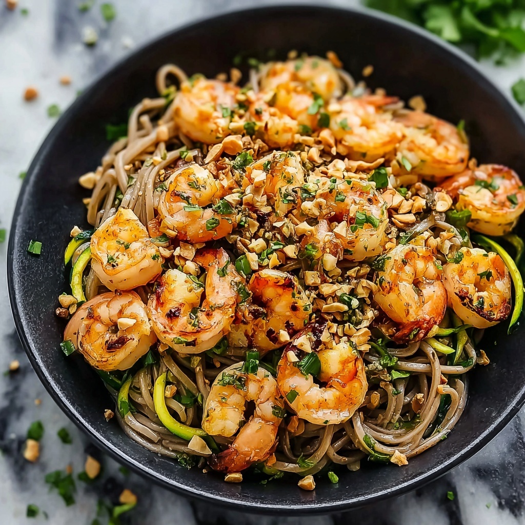 A light and healthy twist on traditional Pad Thai using zucchini noodles and succulent shrimp. This dish combines the tangy tamarind sauce, savory fish sauce, and a hint of sweetness, stir-fried with fresh vegetables, eggs, and peanuts for a perfect low-carb, flavorful meal ready in just 30 minutes.